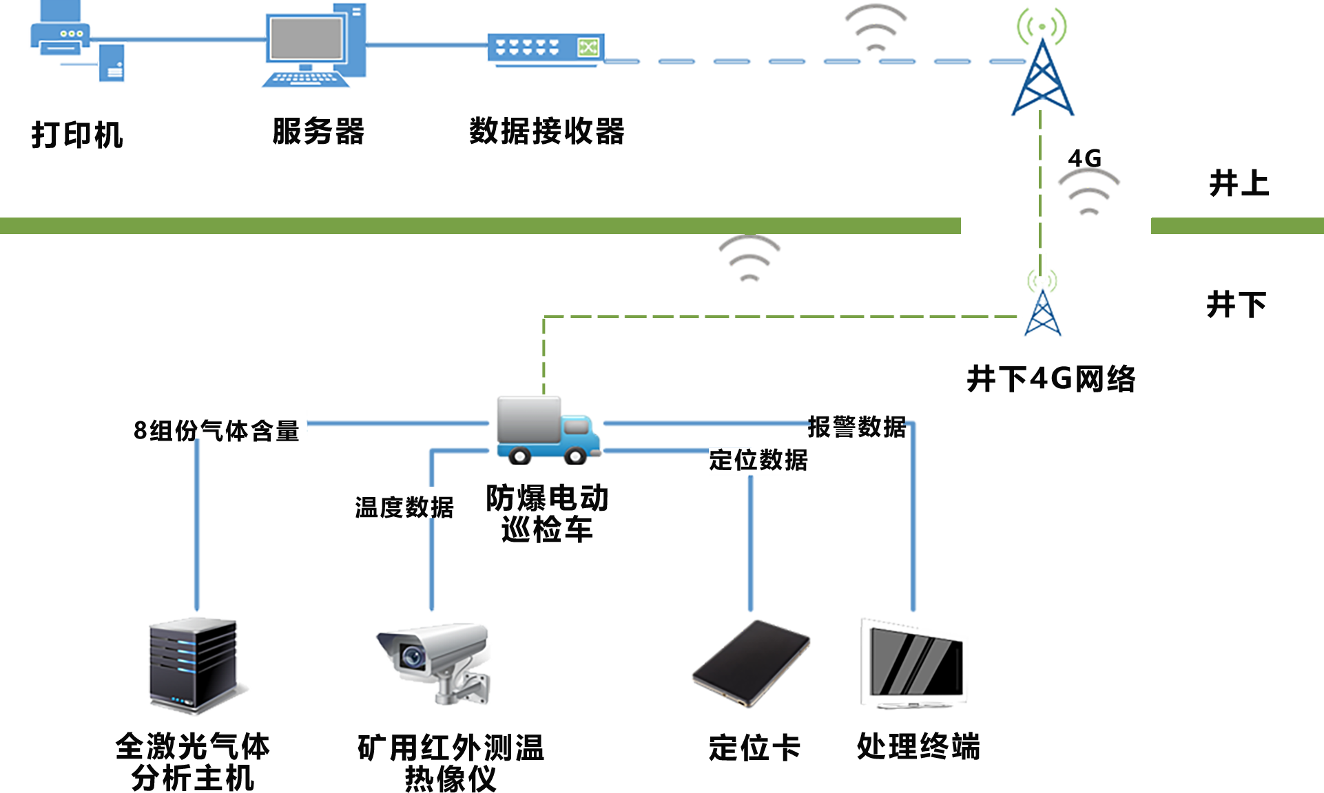 主要應(yīng)用場(chǎng)景:適用于膠輪車(chē)能下礦的斜井,降低瓦檢工作強(qiáng)度,提升工作效率,提升數(shù)據(jù)準(zhǔn)確性,提高數(shù)據(jù)時(shí)效性,更有利于保障安全生產(chǎn)。
